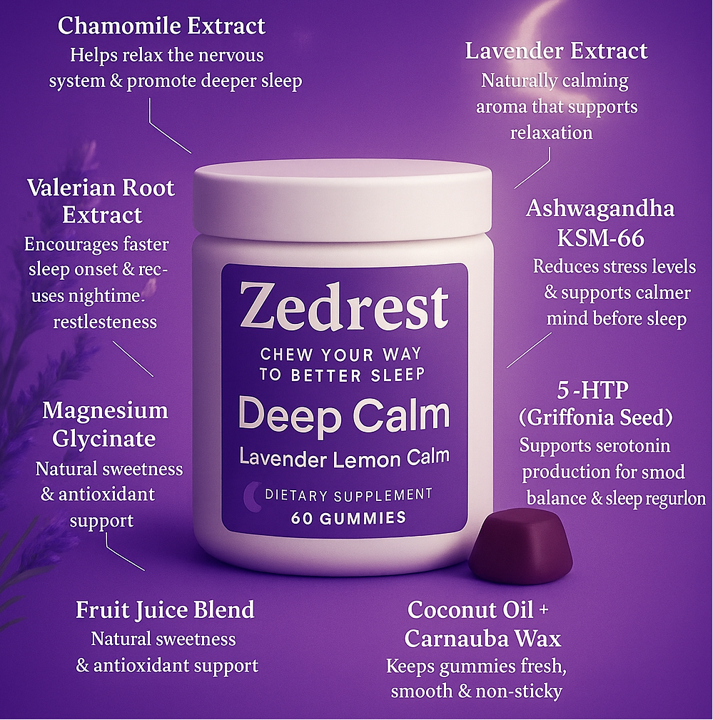 Whether you're struggling with sleepless nights, stress, racing thoughts, or restless body fatigue—Zedrest Sleep Gummies are crafted to help you relax deeply and fall asleep naturally: